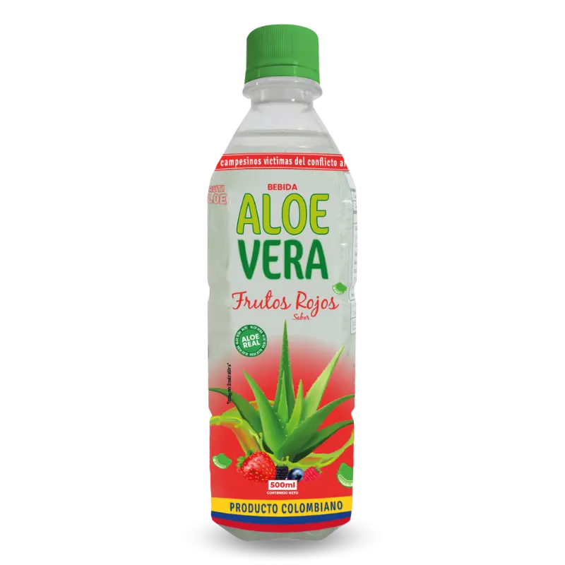 Bebida PET con trozos de Aloe Vera y Estevia, sabor Frutos Rojos