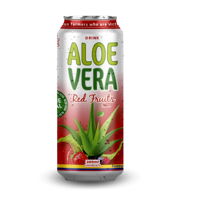 Bebida carbonatada en lata con Aloe Vera, sabor Frutos Rojos
