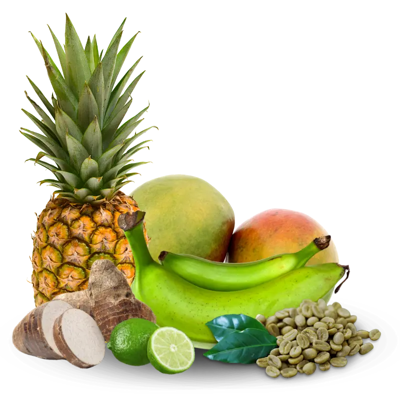 Café verde, limón tahití, Piña, Mango, Plátano Hartón, Malanga, entre otros